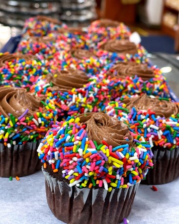 <p>Our fudge brownie topped with seasonal jimmies</p>