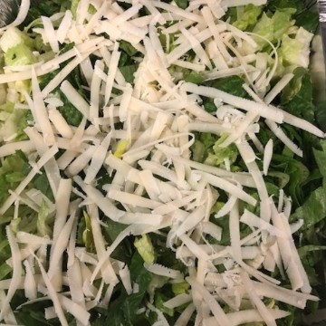 Chopped Romaine Lettuce topped with Homemade Croutons and Shaved Parmesan cheese. Served with Caesar Dressing.