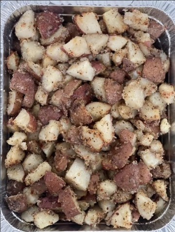 <p>Seasoned and cubed oven roasted red bliss potatoes.</p>