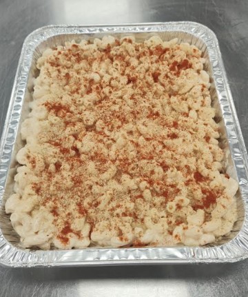 Elbow Macaroni in our own creamy diablo cheddar sauce topped with bread crumbs.